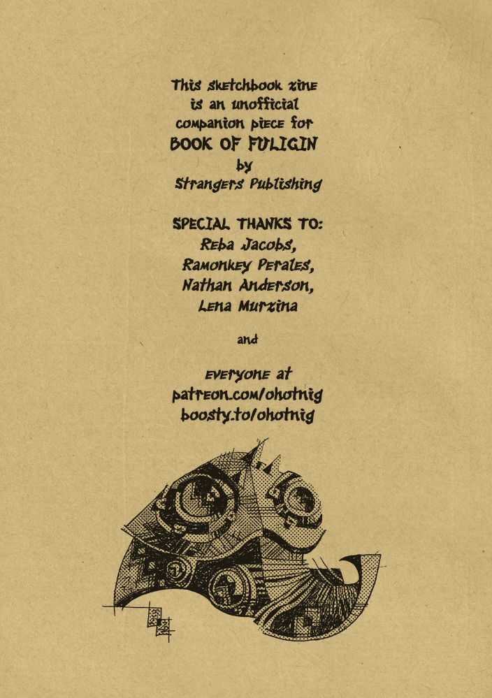 Containing 44 pages of my Gene Wolfe-inspired drawings (originally done as personal sketchbook project for one of my most committed patrons), this little digital fanzine could also be considered an unofficial companion piece for Book of Fuligin.