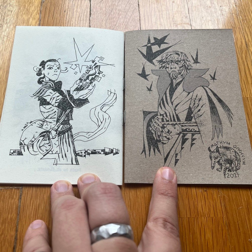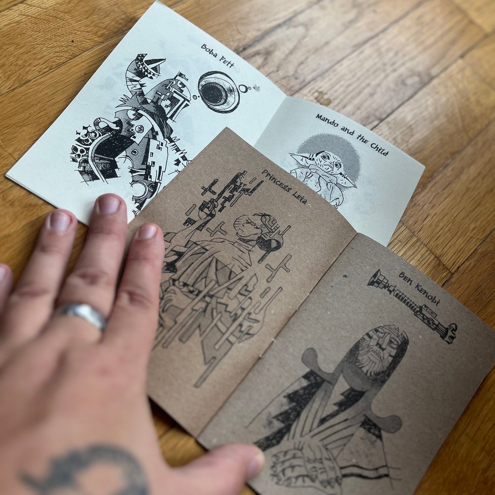4.1×5.8 inches book with 28 black and white drawings inside. Printed on recycled paper with risograph, available in two different colors.