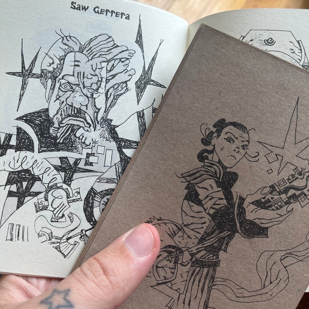 A collection of black and white drawings, mostly from the sketchbook created for one of my endlessly supportive and patient patrons.